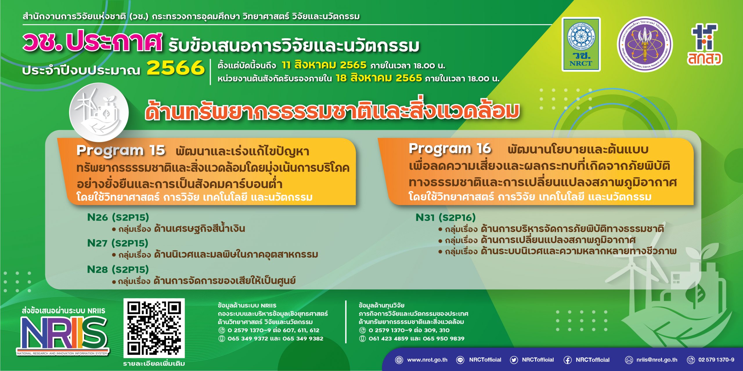 วช. จะประกาศผลการพิจารณาข้อเสนอการวิจัยและนวัตกรรมที่ผ่านการพิจารณาเบื้องต้นทางเว็บไซต์ www.nrct.go.th และhttps://nriis.go.th