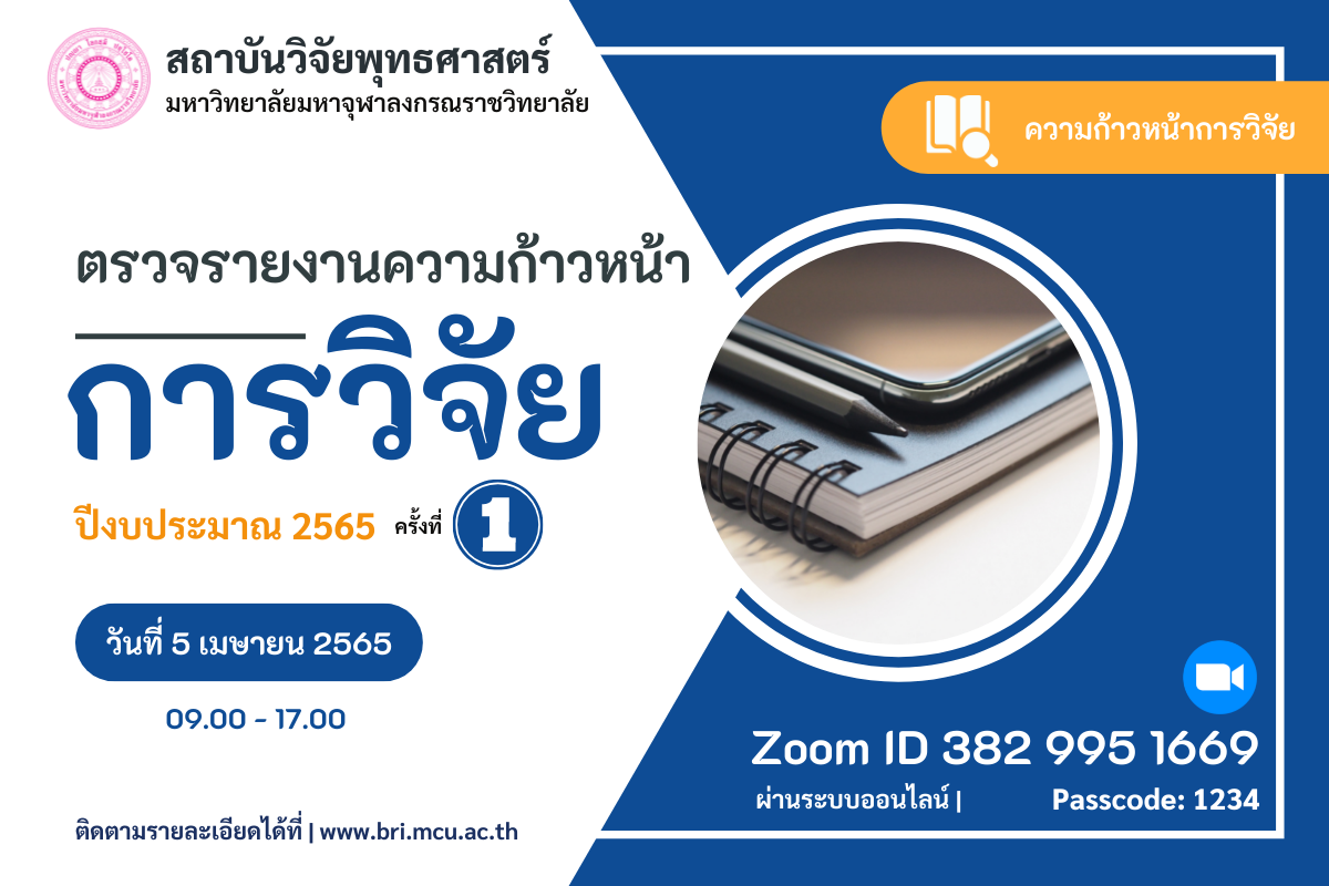 ครั้งที่ 1 ในวันที่ 5 เมษายน 2565 เวลา 09.00 -17.00 ผ่านระบบออนไลน์ | Zoom ID: 382 995 1669 Passcode: 1234 -> https://zoom.us/j/3829951669