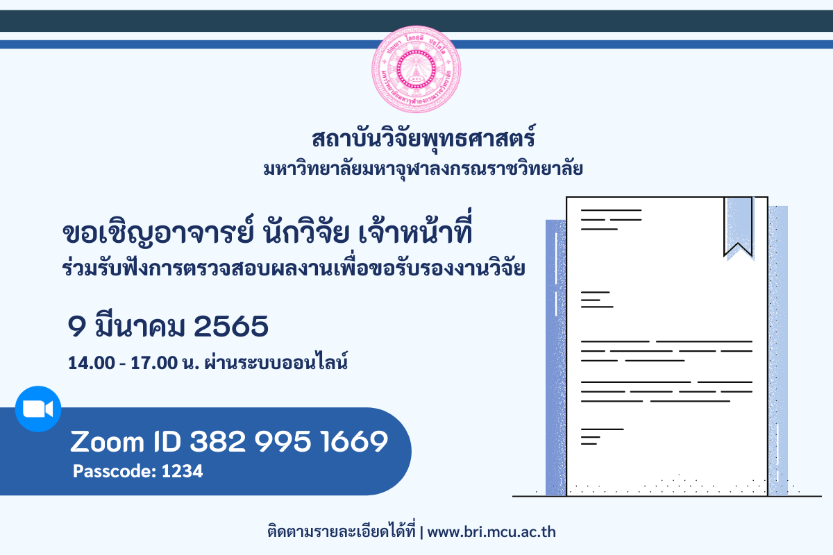 ผ่านโปรแกรม Zoom Meeting ID : ๗๓๑ ๔๓๒ ๒๗๔๕