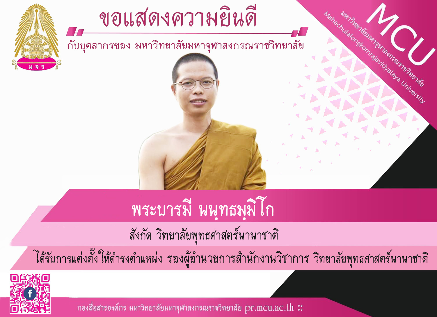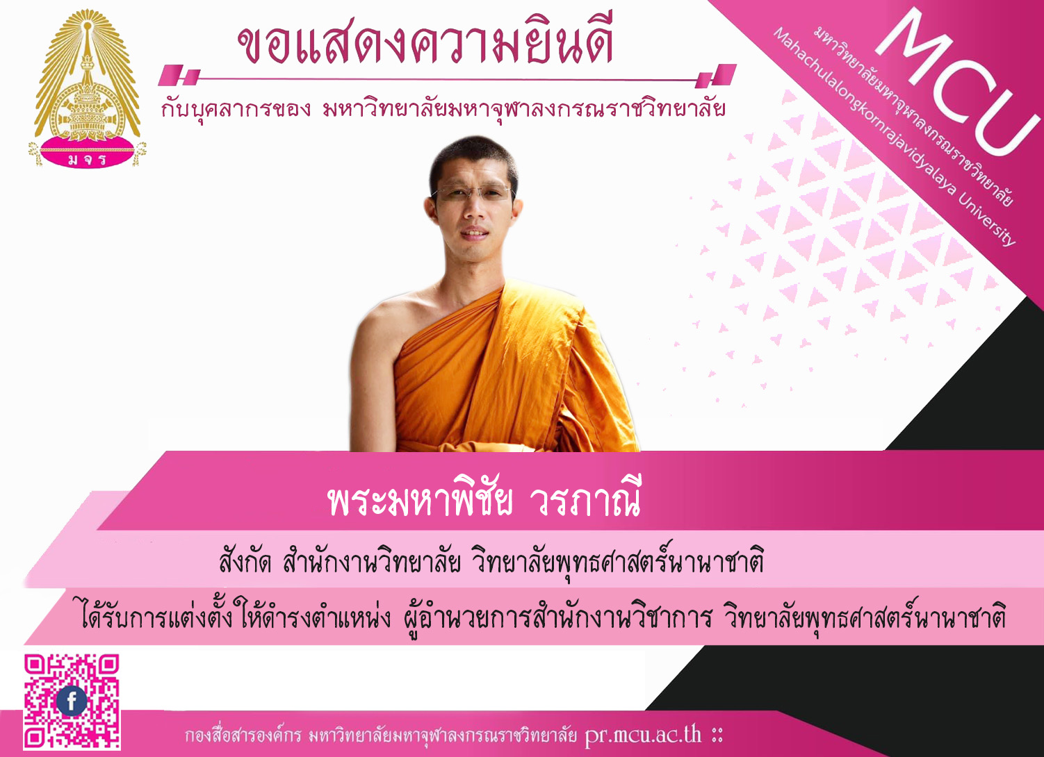 ๑. เรื่อง แจ้งประกาศมหาวิทยาลัยมหาจุฬาลงกรณราชวิทยาลัย เรื่อง แต่งตั้งคณะกรรมการจัดงาน ๑๑๘ ปี ชาตกาล เจ้าประคุณสมเด็จพระพุฒาจารย์ (อาจ อาสภมหาเถระ)