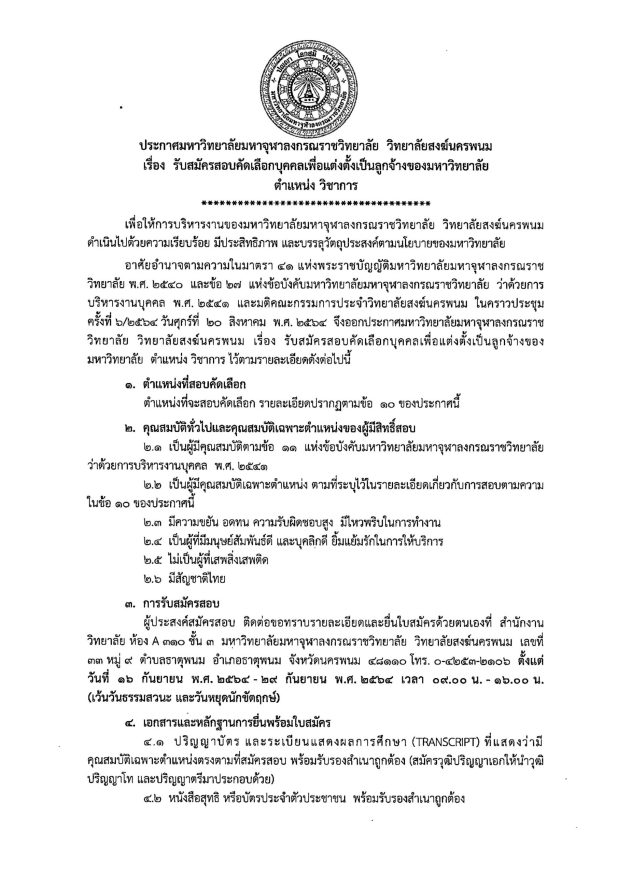 The post ประกาศ รับสมัครสอบคัดเลือกบุคคลเพื่อแต่งตั้งเป็นลูกจ้างของมหาวิทยาลัย ตำแหน่ง อาจารย์ สาขาวิชาพระพุทธศาสนา appeared first on วิทยาลัยสงฆ์นครพนม.