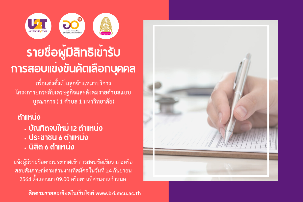 ประกาศรายชื่อผู้มีสิทธิ์สอบสายนักวิชาการ