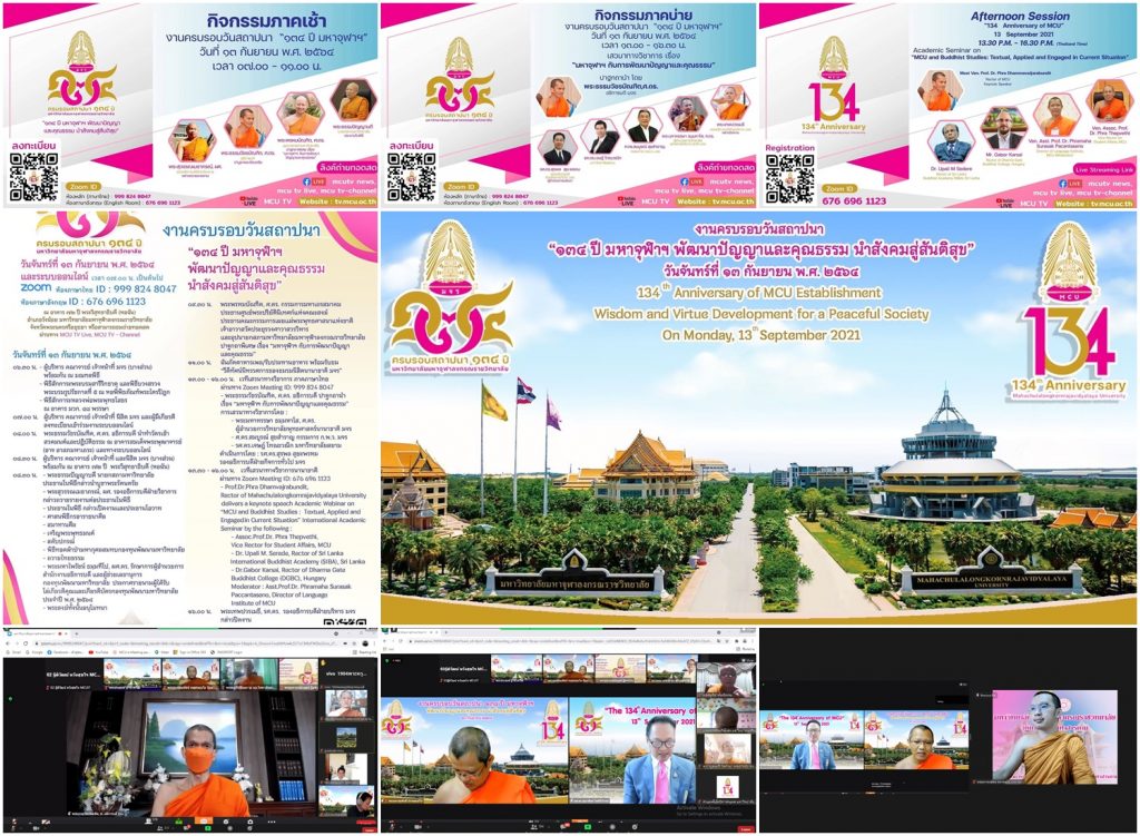 วันจันทร์ที่ ๑๓ กันยายน ๒๕๖๔ เวลา ๐๗.๐๐ น. คณะผู้บริหาร คณาจารย์ เจ้าหน้าที่และนิสิต วิทยาลัยสงฆ์มหาสารคาม มหาวิทยาลัยมหาจุฬาลงกรณราชวิทยาลัย ได้เข้าร่วมงานครบรอบวันสถาปนา๑๓๔ ปีมหาจุฬาฯ “พัฒนาปัญญา และคุณธรรมนำสังคมสู่สันติสุข” ผ่านระบบออนไลน์