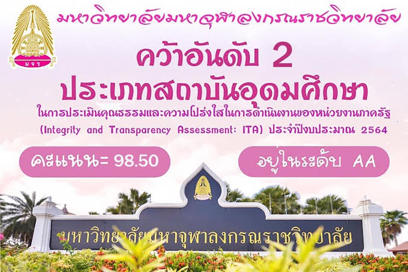 “มหาจุฬาฯ คะแนนเป็นอันดับ 2 จากม.รัฐทั่วประเทศ” คุณธรรม-โปร่งใส ITA