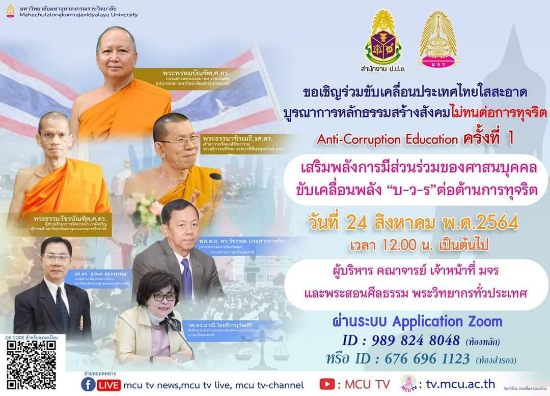 The post ขอเชิญร่วมขับเคลื่อนประเทศไทยใสสะอาด ออนไลน์ เริ่ม 24-8-64 first appeared on มหาวิทยาลัยมหาจุฬาลงกรณราชวิทยาลัย วิทยาลัยสงฆ์สุราษฎร์ธานี.