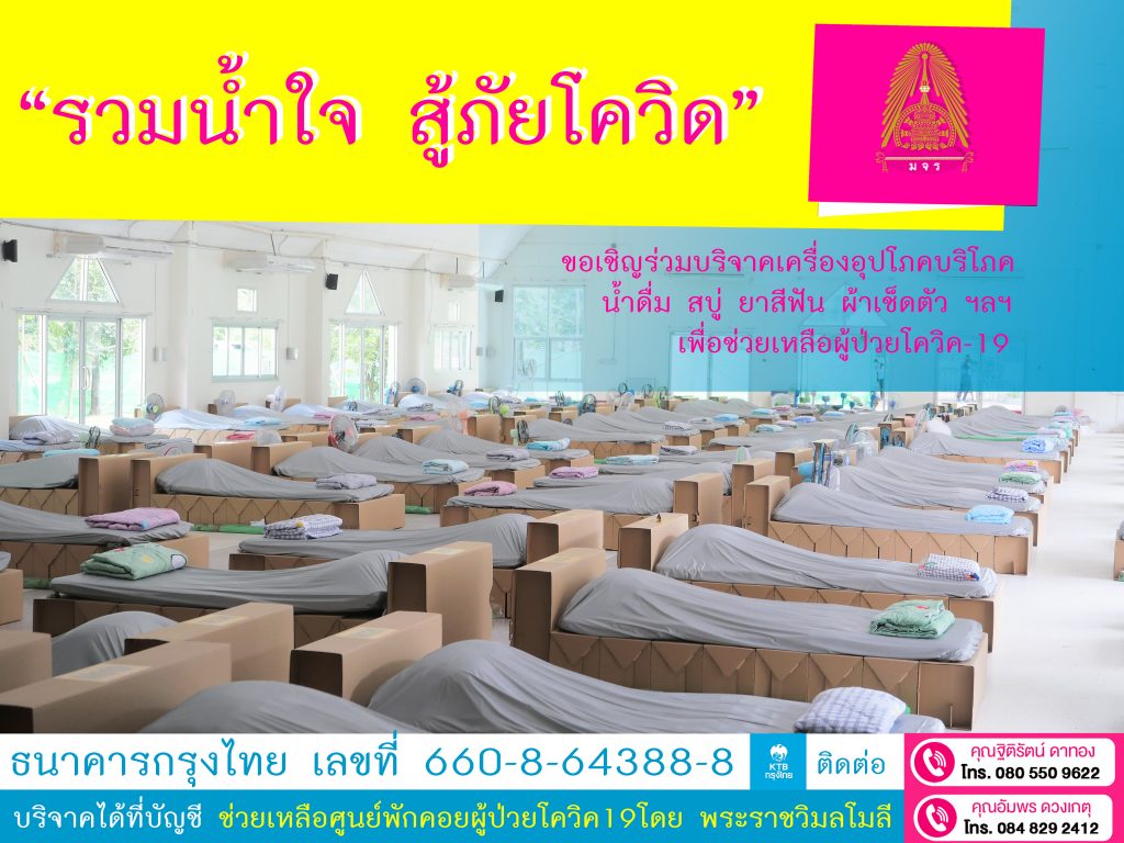 มหาวิทยาลัยมหาจุฬาลงกรณราชวิทยาลัย วิทยาเขตสุรินทร์ ขอเชิญร่วมบริจาคเครื่องอุปโภคบริโภค น้ำดื่ม สบู่ ยาสีฟัน ผ้าเช็ดตัว ฯลฯ เพื่อช่วยเหลือผู้ป่วยโควิค-19 ณ ศูนย์พักคอยผู้ป่วยโควิด-19 มจร.สุรินทร์
