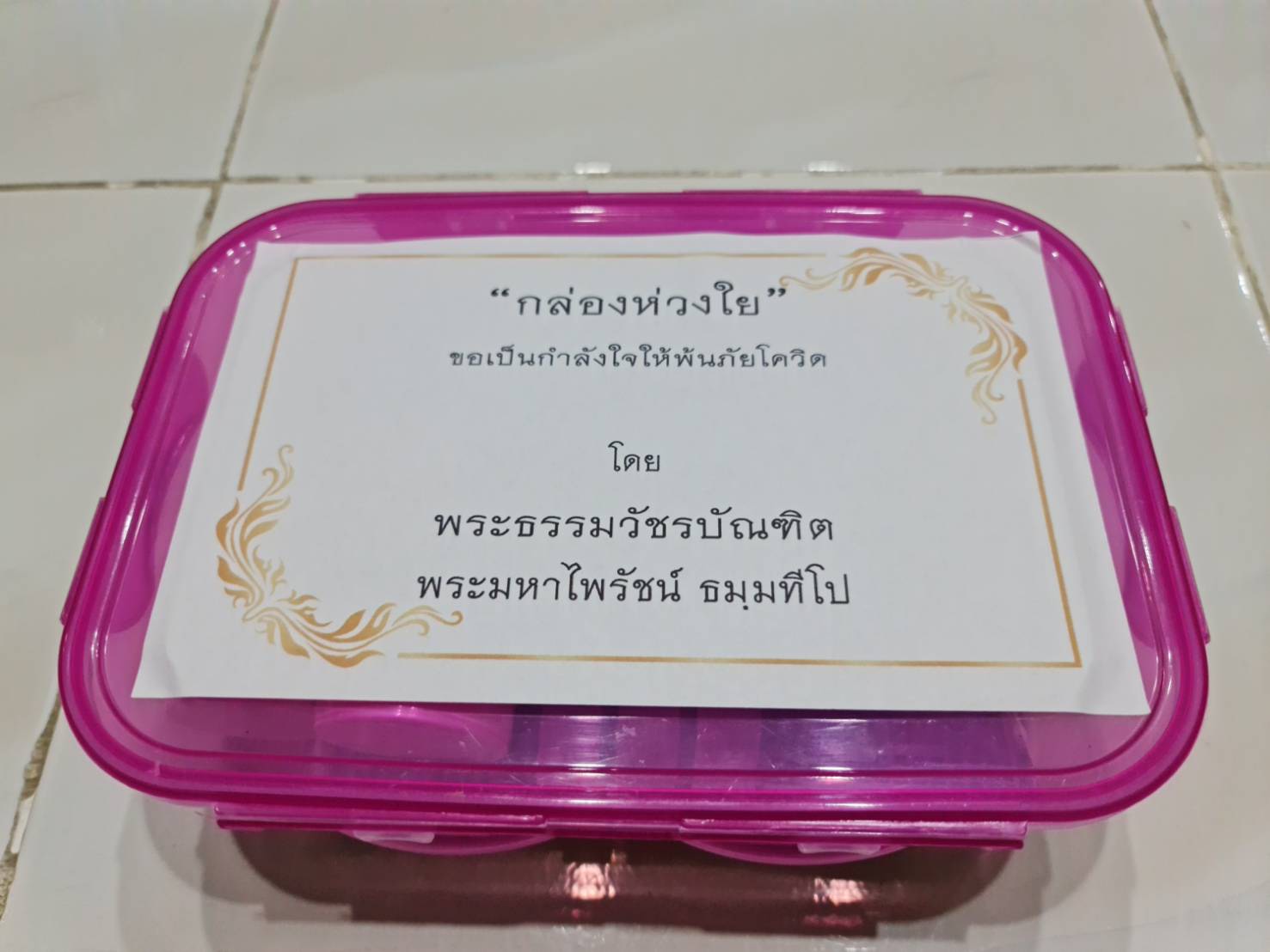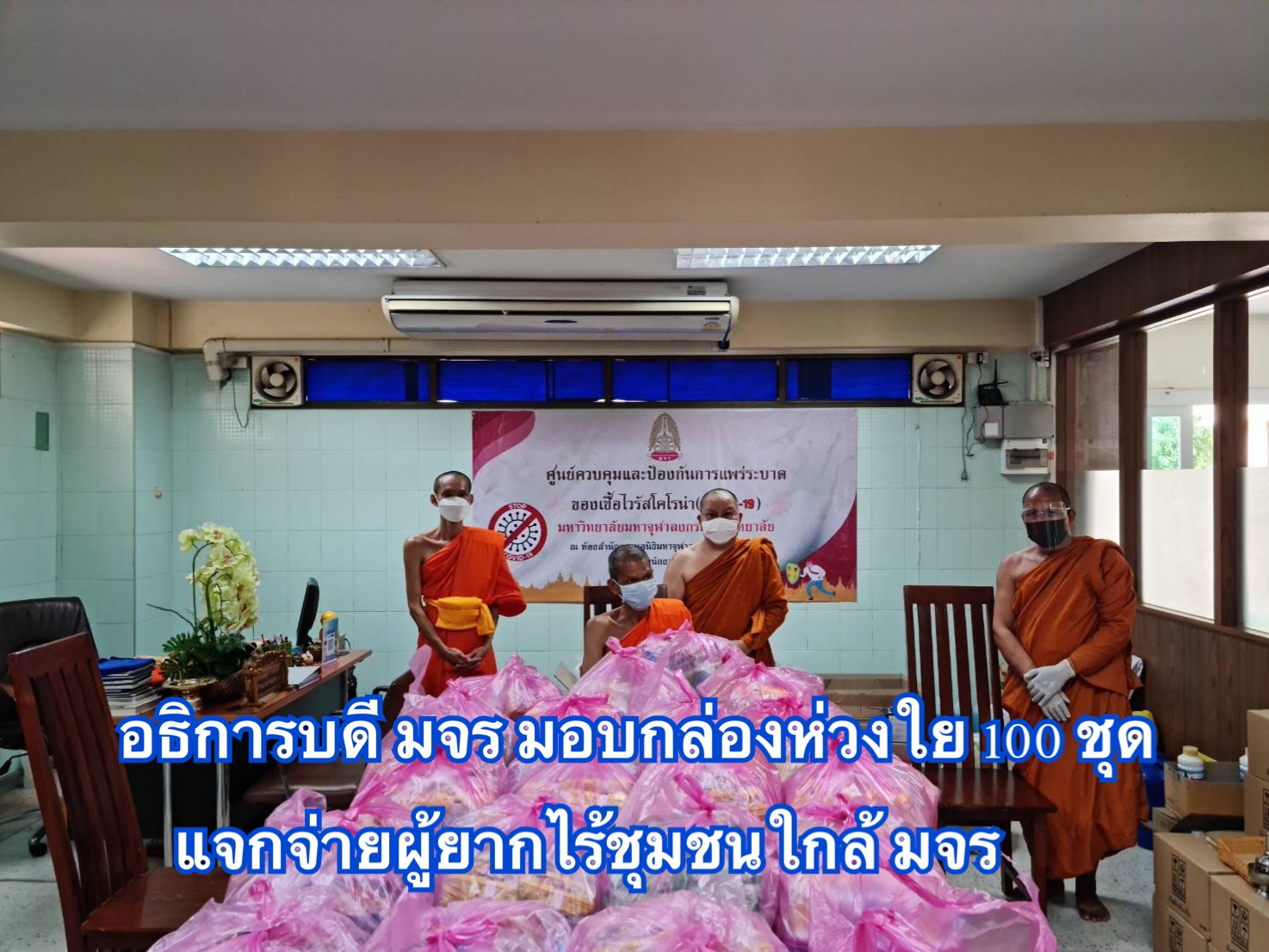 2 August 2021 at 2:00 pm, Prof. Dr. Phra Dhamvajrabundit, Rector of Mahachulalongkornrajavidyalaya University donated 100 care boxes containing fever medicine of Andrographis paniculata tablets, alcohol gel, surgical masks, drinking water and instant noodles, procured and donated by Asst.Prof.Dr. Phramaha Phairat Dhammathipo and given to Phramaha Phutthasak Thanissaro to distribute to the poor and needy affected by COVID-19 pandemic in the communities nearby the university.