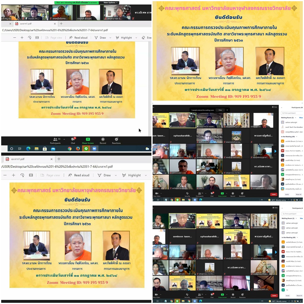 วันเสาร์ที่ ๓๑ กรกฏาคม พ.ศ.๒๕๖๔ คณาจารย์ประจำหลักสูตรพุทธศาสตรบัณฑิต สาขาวิชาพระพุทธศาสนา วิทยาลัยสงฆ์มหาสารคาม มหาวิทยาลัยมหาจุฬาลงกรณราชวิทยาลัย ได้เข้าร่วมประชุมประเมินคุณภาพการศึกษาภายใน ระดับหลักสูตรพุทธศาสตรบัณฑิต สาขาวิชาพระพุทธศาสนา หลักสูตรรวม ปีการศึกษา ๒๕๖๓ ผ่านระบบ Zoom Meeting