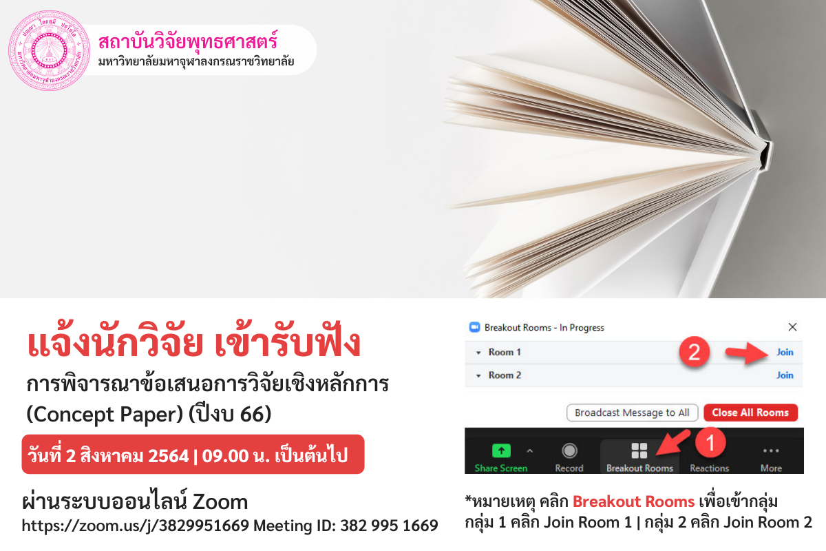 แจ้งนักวิจัย ที่ส่ง Concept Paper ข้อเสนอการวิจัย ปีงบ 2566 เข้ารับฟังการพิจารณาข้อเสนอการวิจัยเชิงหลักการ (Concept Paper) (ออนไลน์) วันที่ 2 สิงหาคม 2564 | 09.00 เป็นต้นไป ผ่านระบบ Zoom https://zoom.us/j/3829951669 Meeting ID: 382 995 1669