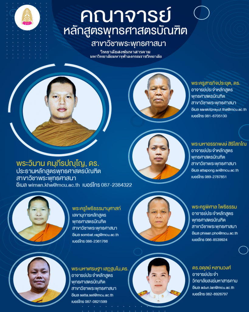 The post คณาจารย์ประจำหลักสูตร appeared first on วิทยาลัยสงฆ์มหาสารคาม.