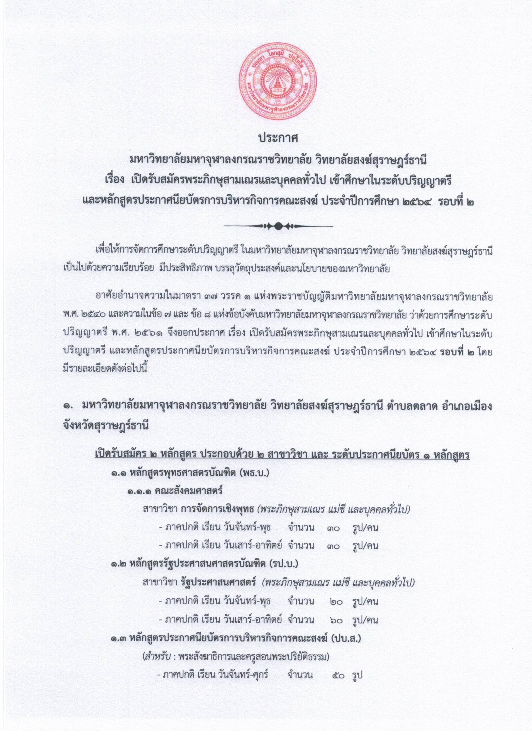 มหาวิทยาลัยมหาจุฬาลงกรณราชวิทยาลัย วิทยาลัยสงฆ์สุราษฎร์ธานี