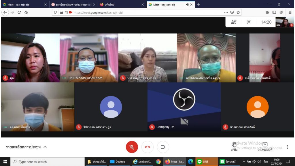 สำนักงานวิทยาลัย วิทยาลัยสงฆ์มหาสารคาม มหาวิทยาลัยมหาจุฬาลงกรณราชวิทยาลัย ได้จัดประชุมบุคลากรประจำสำนักงานวิทยาลัย วิทยาลัยสงฆ์มหาสารคาม ประจำเดือนเมษายน ครั้งที่ ๔/๒๕๖๔ ในวันพฤหัสบดีที่ ๒๒ เมษายน ๒๕๖๔ เวลา ๑๔.๐๐ น. เป็นต้นไป ผ่านระบบออนไลน์ Google Meeting นำโดย พระโสภณพัฒนบัณฑิต,รศ.ดร. รักษาการผู้อำนวยการวิทยาลัยสงฆ์มหาสารคาม ได้เมตตาเป็นประธานในการประชุม โดยแต่ละกลุ่มงานได้สรุปผลการดำเนินงานในรอบระยะเวลา ระหว่างวันที่ ๑๐ มีนาคม – ๒๑ เมษายน ๒๕๖๔ ประธานในการประชุมได้ชี้แนะวิธีการปฏิบัติงานในกลุ่มงานต่างๆ ของสำนักงานวิทยาลัย, นางสาวพิมวดี คำมูล ผู้อำนวยการสำนักงานวิทยาลัย ได้แจ้งรายชื่อบุคลากรที่ได้รับมอบหมายให้รับผิดชอบองค์ประกอบและตัวบ่งชี้งานประกันคุณภาพการศึกษาภายใน ระดับวิทยาลัย ประจำปีการศึกษา ๒๕๖๓(องค์ประกอบที่ ๕ การบริหารจัดการ), พิจารณานิสิตค้างค่าเทอม ประจำปีการศึกษา ๒๕๖๔