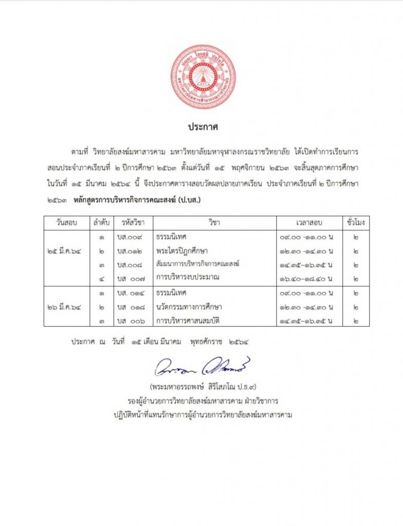 ๑.๒.๕ เรื่อง แจ้งการเข้าตรวจประเมินโรงครัว มหาวิทยาลัยมหาจุฬาลงกรณราชวิทยาลัย